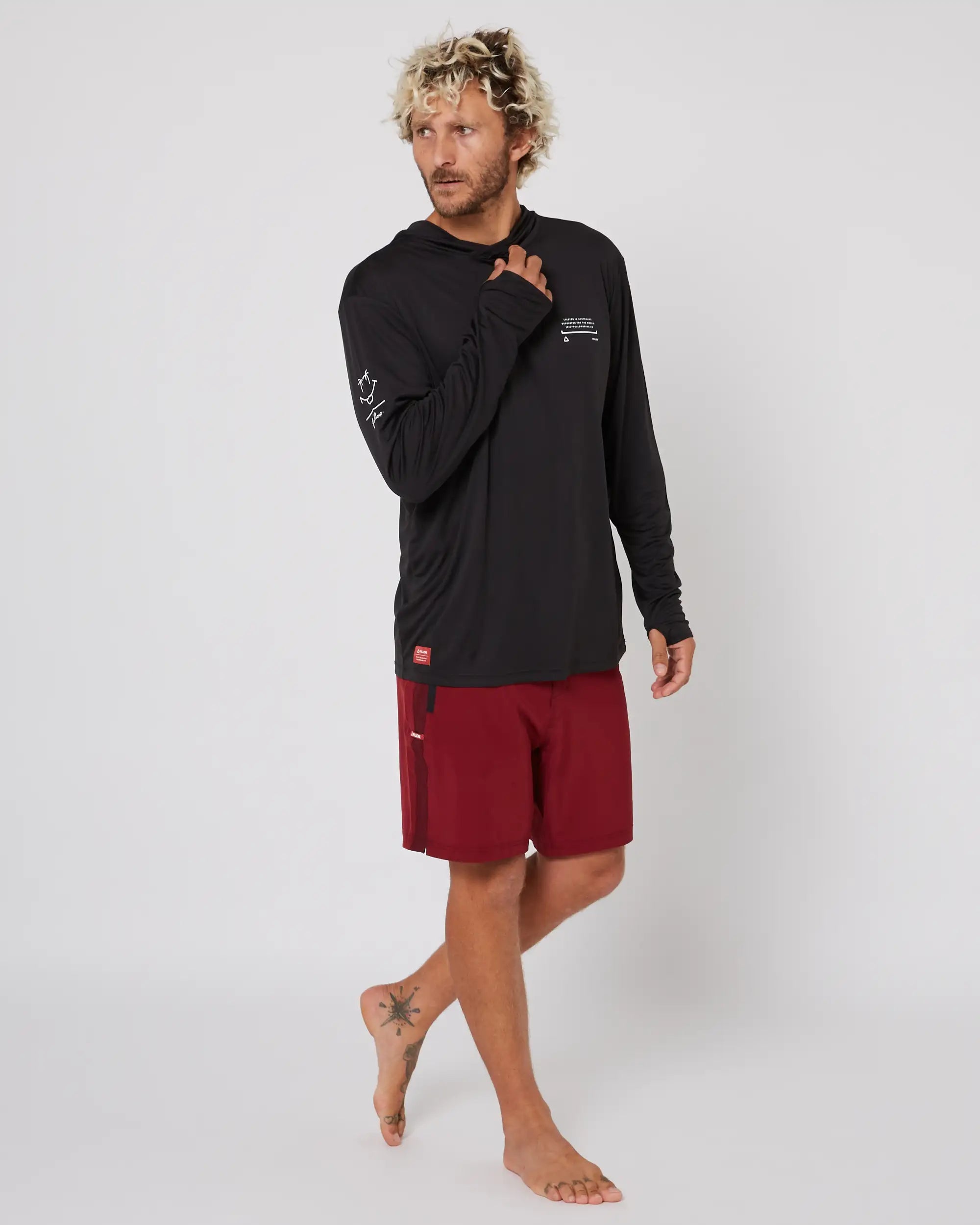 Live Daily is Alex’s Motto and one look at this Instagram account and you can see he is true to that. A waterman troubadour, following the direction of the sun. His signature Sun Tee is made from the same high weight material as our Long Sleeve. Ensuring it dries fast, doesn’t overly stretch when wet and is ridiculously soft and maintains a SPF30+ in water protection. We went through a lot of prototypes and testing until we nailed our brief. One touch and you’ll see why we went to the effort.